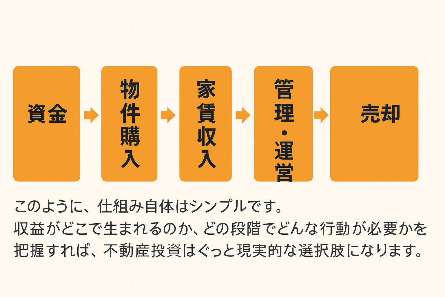 不動産投資と一言で言っても、「どうやってお金が入ってくるのか」「どこで利益が出るのか」を理解していないと、不安が残ります。